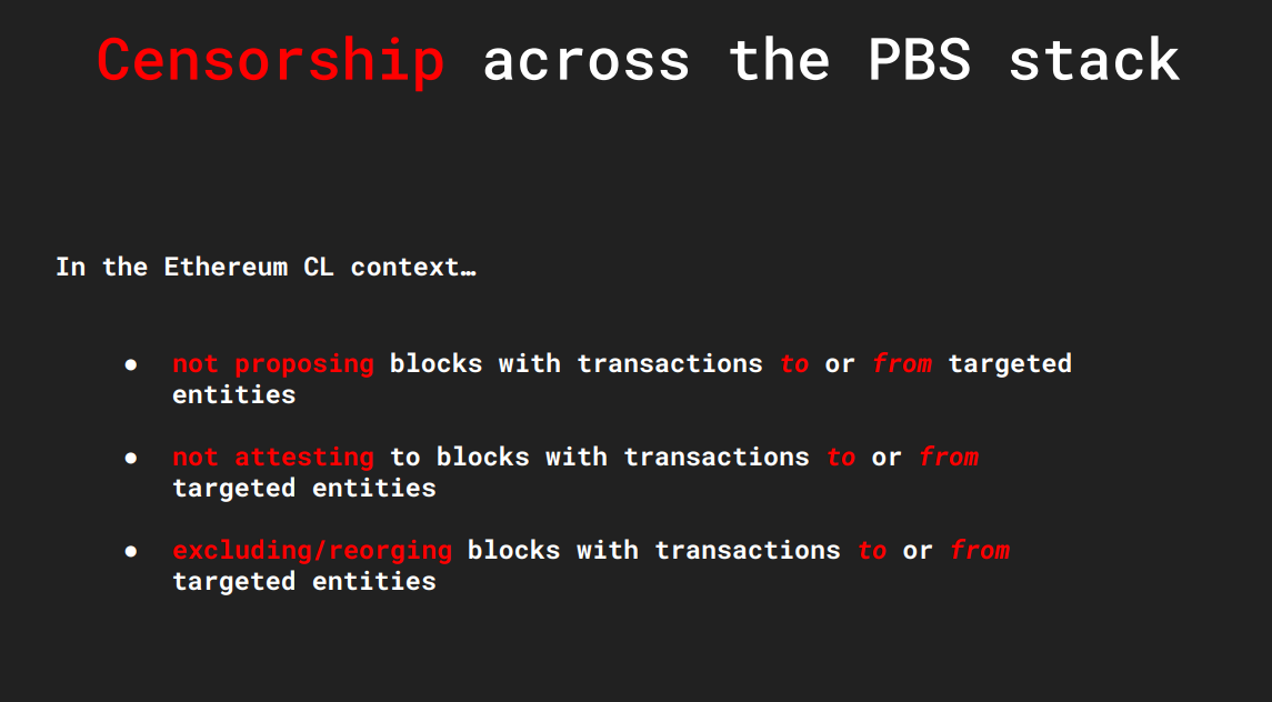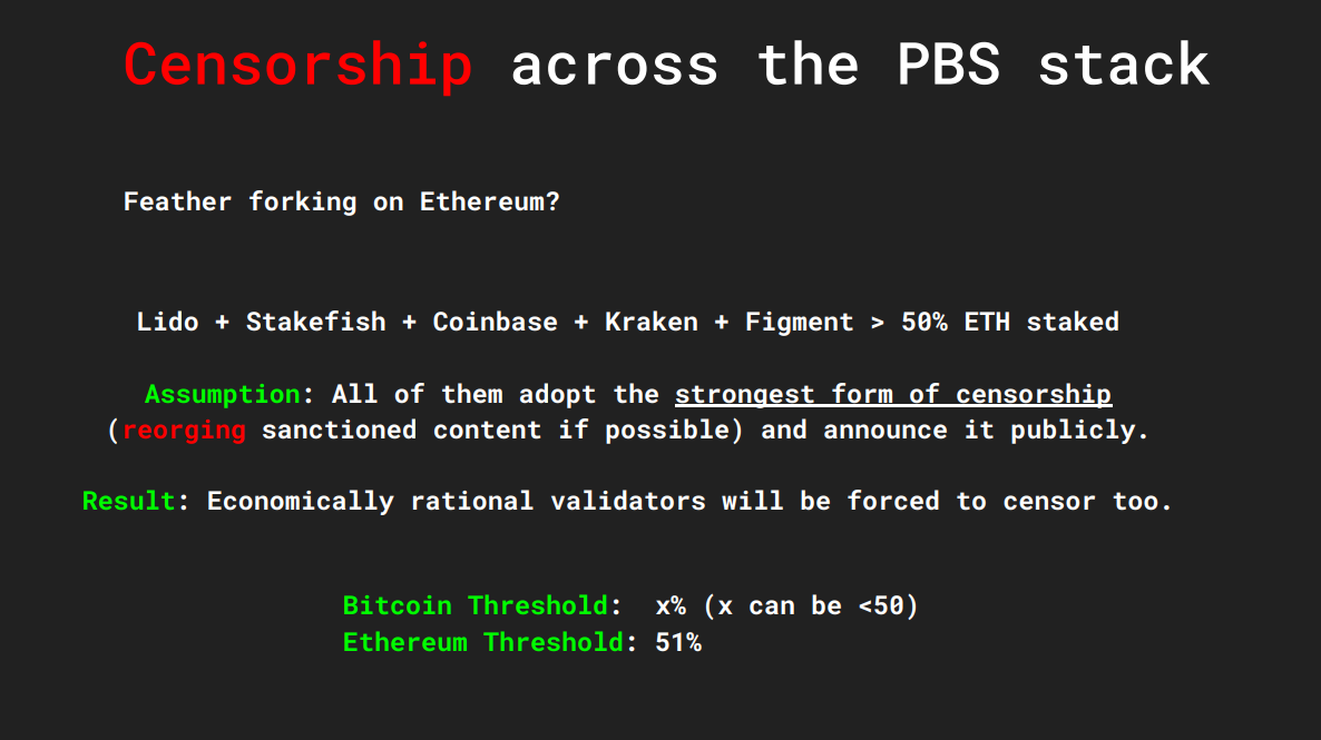 La censure dure via des réorganisations ne s'est pas encore produite sur Ethereum, car si c'était le cas, le slashing social pourraient la contrer en retirant les ETH des entités attaquantes.
