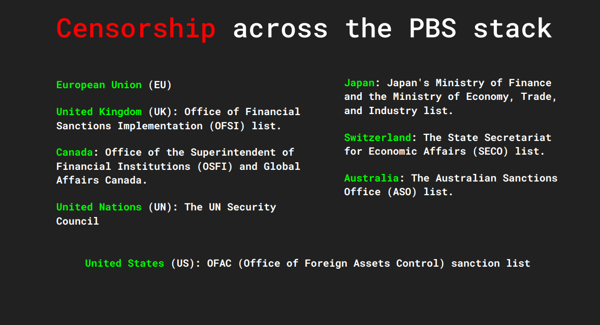 La censure dans le contexte d'Ethereum concerne principalement le blocage des transactions associées à des entités sur les listes de sanctions comme l'OFAC.