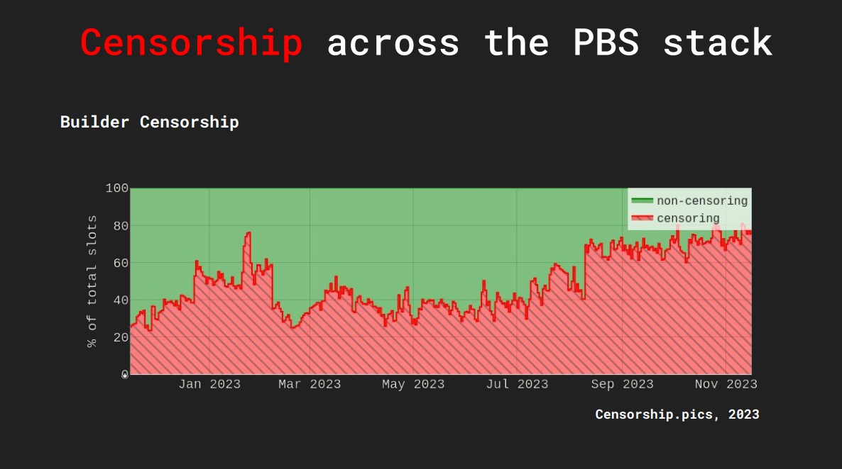 Le paysage des constructeurs semble préoccupant, avec environ 80% des constructeurs qui censurent les transactions OFAC.