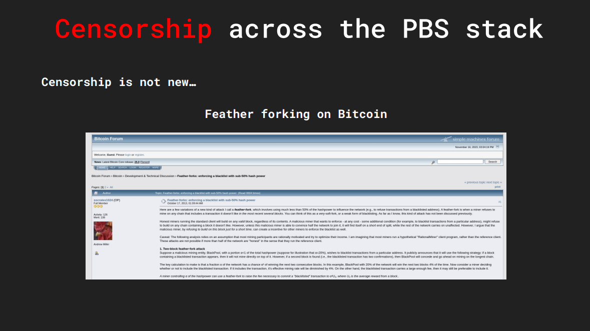 Toni (l'orateur) comparera la censure sur Bitcoin VS Ethereum pour l'exemple.