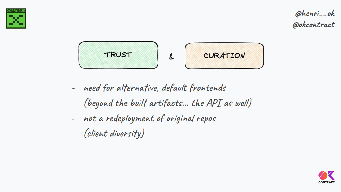 Nous pouvons créer un référentiel d'interactions et de frontends alternatifs pour des projets DeFi/NFT, et la communauté peut vérifier que les définitions et les runtimes sont corrects.