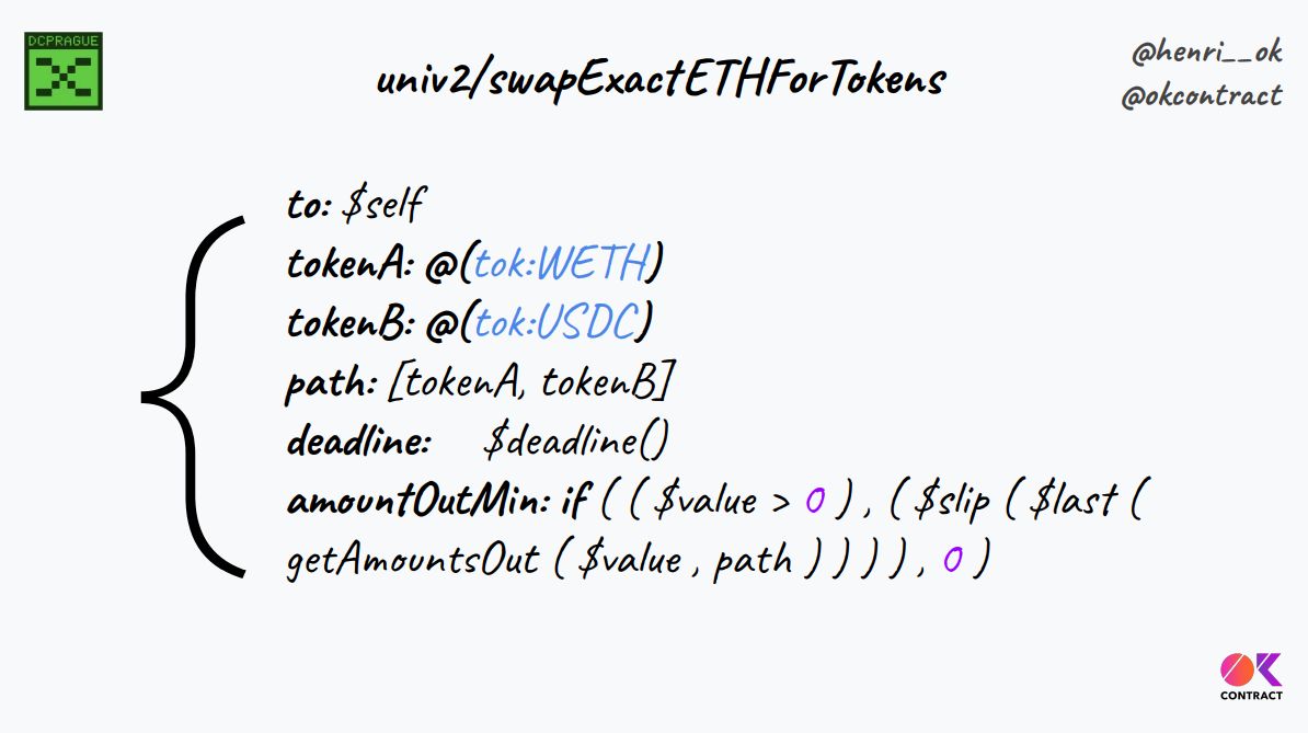 Le lambdascript est une alternative à la propagation de la sémantique des transactions dans diverses parties du code complexe du frontend, et inclut des détails de haut niveau comme le contrat cible, les paramètres, les calculs pour les montants. De plus, le compilateur peut détecter les erreurs et les utilisateurs/auditeurs peuvent facilement vérifier le comportement on-chain.
