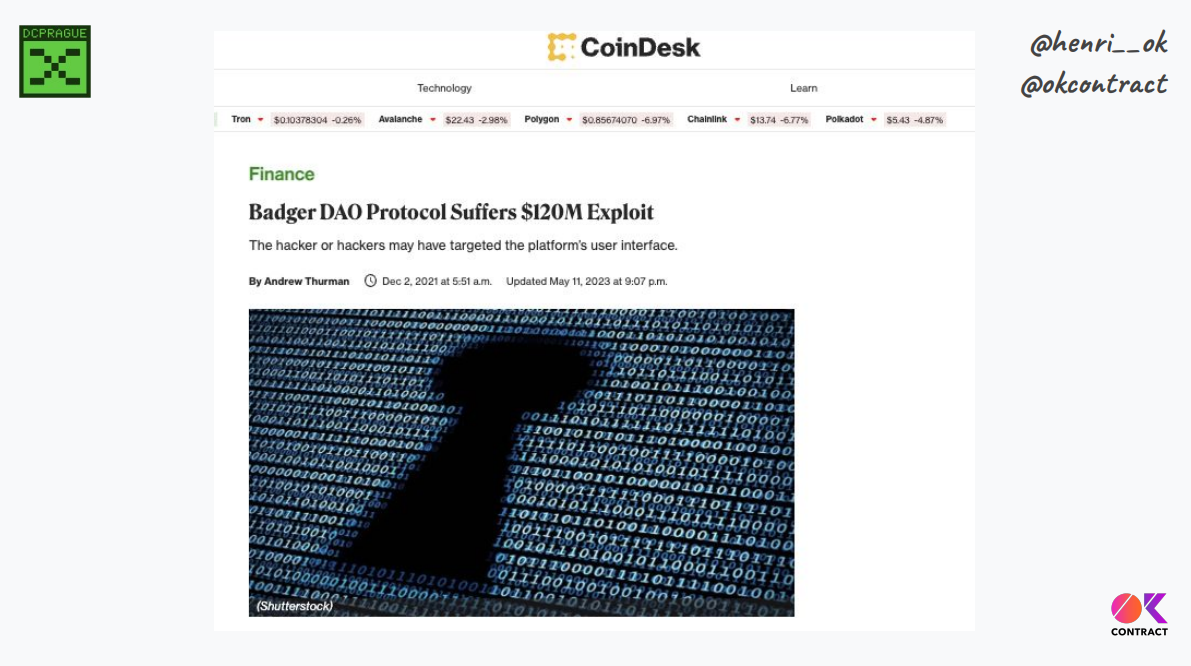 L'histoire récente montre que les attaques de frontend peuvent être très dommageables, comme BadgerDAO pour 120 millions de dollars :