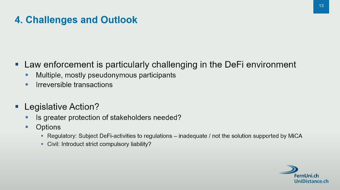 - DeFi is transnational, requiring difficult cross-border cooperation