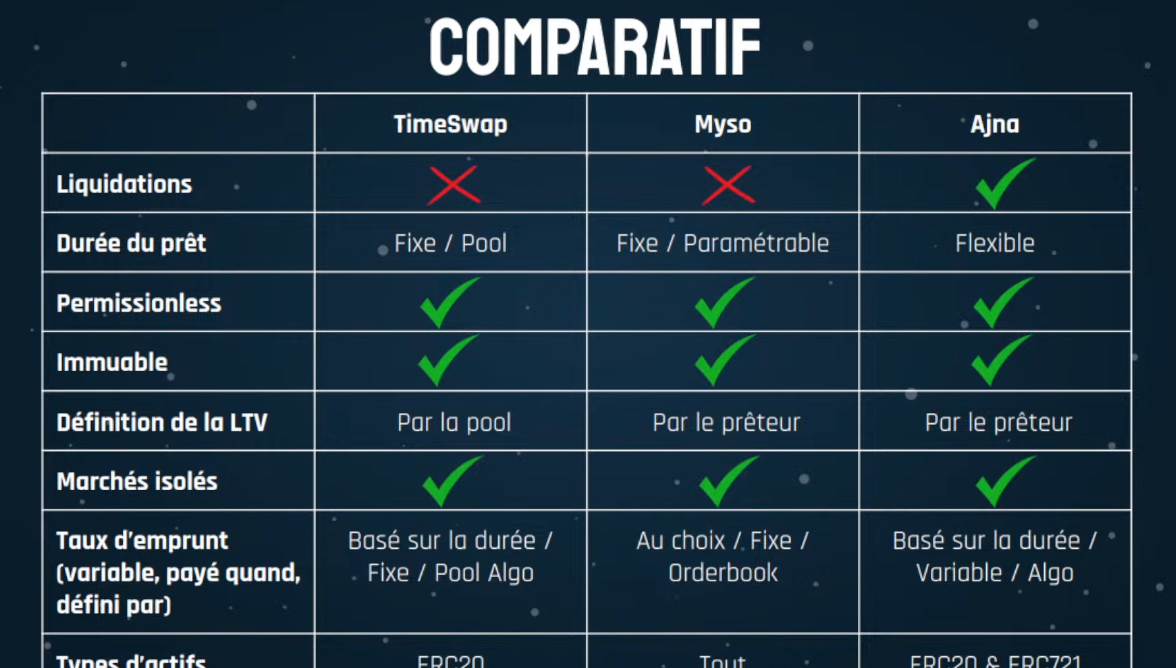 Comme dit en introduction, Cyrille a retenu 3 protocoles de prêts et d'emprunts sans oracle. Il est temps de les aborder :