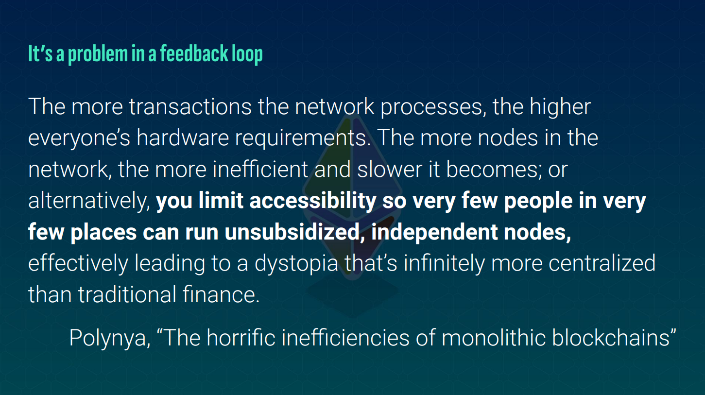 - Limiting who can run nodes leads to centralization and goes against Ethereum's ethos of financial access.