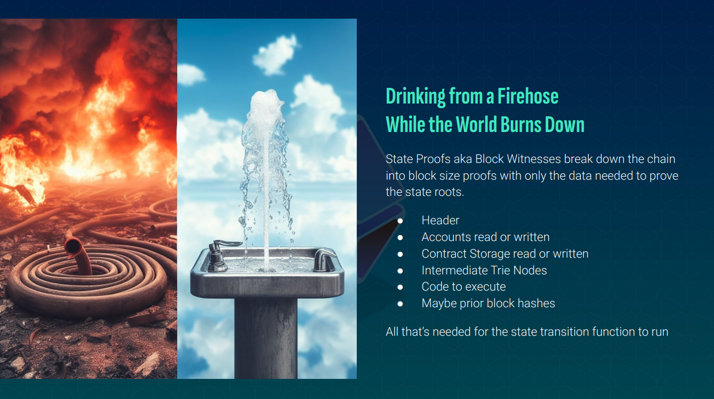 State proofs contain the minimum data needed to verify a block :