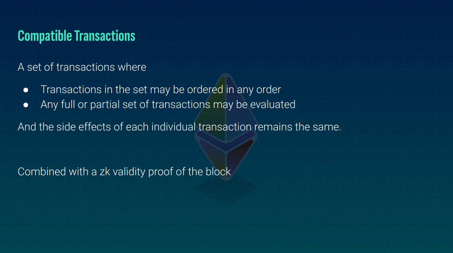 You could evaluate any subset of compatible transactions in any order and get the same results.